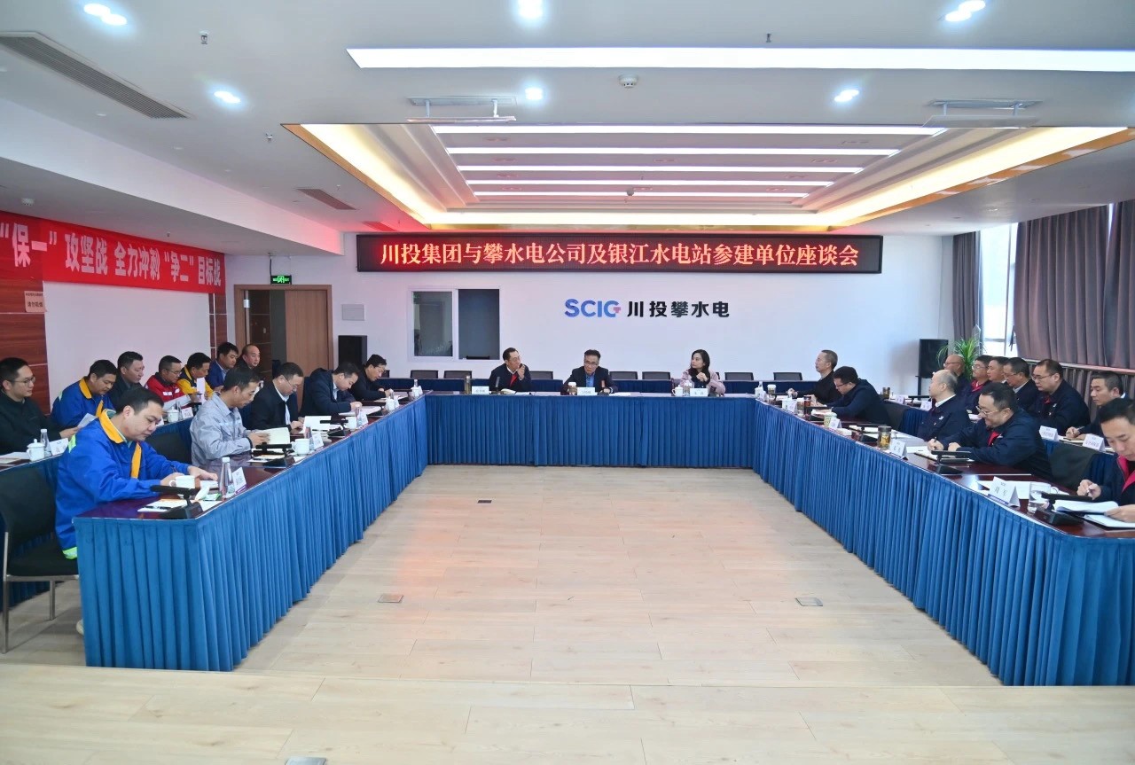 隨后,吳曉曦一行座談聽取了項目工程建設(shè)、投產(chǎn)計劃、科研創(chuàng)新等情況匯報,充分肯定了工程項目的階段性成績,并向參建各方的辛勤付出表示感謝。他強(qiáng)調(diào),作為省級重點項目,銀江水電站承載著攀枝花市民的美好期待,高質(zhì)量建成投產(chǎn)達(dá)效意義重大。參建各方要千方百計保進(jìn)度,密切配合、攻堅克難,確保年底首臺機(jī)組發(fā)電;要千方百計保質(zhì)量,堅持高標(biāo)準(zhǔn)、嚴(yán)要求,確保施工規(guī)范、質(zhì)量過硬,努力打造標(biāo)桿工程;要千方百計保安全,壓緊壓實安全生產(chǎn)責(zé)任,落實落細(xì)安全防護(hù)措施,堅決遏制事故發(fā)生;要認(rèn)真履行國企責(zé)任,杜絕拖欠和克扣農(nóng)民工工資,確保安全穩(wěn)定和諧。會上,朱莉?qū)Π踩h(huán)保、維穩(wěn)等工作作出具體安排。