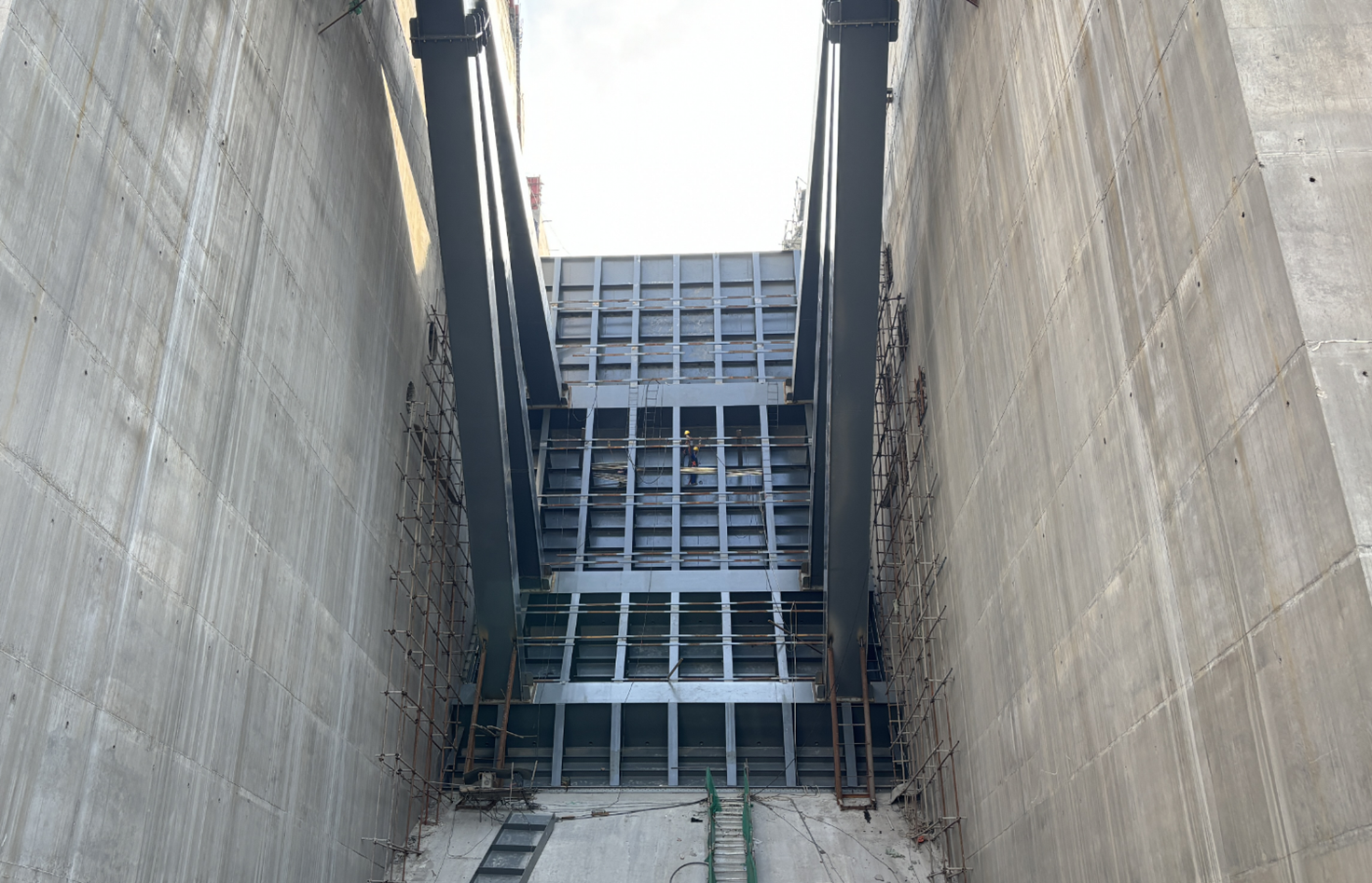 徐孝剛表示,金屬結(jié)構(gòu)安裝是實(shí)現(xiàn)工程下閘蓄水目標(biāo)的核心任務(wù),自7月下旬首節(jié)弧形工作門吊裝以來,在不到3個(gè)月的時(shí)間內(nèi),將要完成近萬噸的安裝工程量,工期緊、任務(wù)重、難度大,參建各方超前謀劃、提前部署,深入開展設(shè)計(jì)及施工優(yōu)化,多次專題研討安裝方案并組織專家論證,突破多項(xiàng)常規(guī)方法,采取鋼絞線提升裝置安裝尾水事故檢修門、臨時(shí)平臺配合汽車吊站位安裝弧形工作門、門槽安裝及其二期混凝土澆筑工序循環(huán)優(yōu)化等一系列超常規(guī)措施,大幅縮短了安裝工期,取得了階段性成果,希望各參建單位持續(xù)保持昂揚(yáng)斗志、乘勢而上,協(xié)同并進(jìn)、合力攻堅(jiān),為全面實(shí)現(xiàn)工程建設(shè)目標(biāo)不懈奮斗。