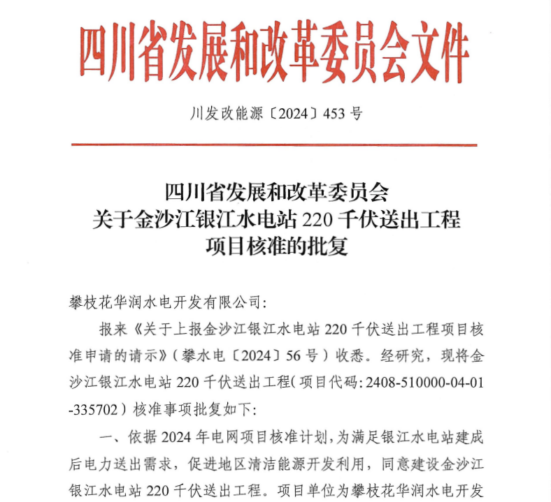 9月6日,川投能源所屬金沙江銀江水電站220千伏送出工程成功取得四川省發(fā)改委核準批復,為順利實現(xiàn)蓄水發(fā)電目標再增“助推器”。