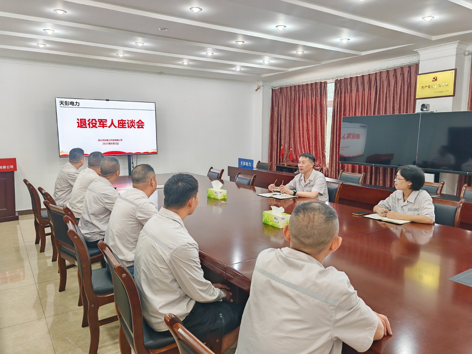 各所屬單位結(jié)合實際情況開展了“八一”建軍節(jié)走訪慰問活動。天彭電力公司、百花灘電廠召開退役軍人座談會,高奉山電廠開展“八一”建軍節(jié)主題黨日活動,槽漁灘公司組織觀看愛國主義教育電影《南京照相館》,為退役軍人送上節(jié)日祝福和慰問。所屬單位認真學習貫徹習近平總書記對雙擁工作的重要指示精神,重點了解退役軍人當前工作與生活面臨的困難。退役軍人職工代表結(jié)合自身經(jīng)歷,分享了在部隊期間的成長經(jīng)歷和難忘回憶,并表示永葆軍人本色,做到“退役不褪色,轉(zhuǎn)崗不轉(zhuǎn)志”,不斷提升業(yè)務能力和水平,發(fā)揮模范帶頭作用,以更高的水準應對工作中各種挑戰(zhàn)和機遇。當前正值迎峰度夏保供電關鍵期,號召全體退役軍人職工繼續(xù)發(fā)揚“特別能吃苦、特別能戰(zhàn)斗”的作風,在保電保供攻堅戰(zhàn)中當先鋒、打頭陣,以實際行動踐行水電人的初心和“退役不褪色”的莊嚴承諾。