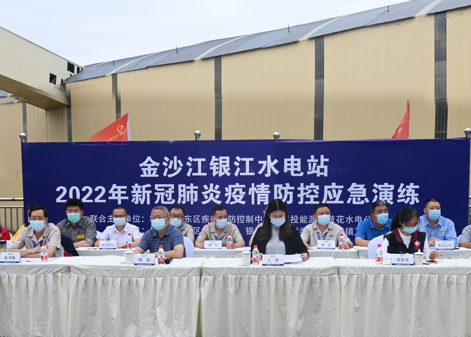 為進一步做好公司新冠疫情防控工作,強化和提高公司與各參建單位的應(yīng)急處置意識和能力,5月21日上午,攀水電公司與東區(qū)疾控中心在銀江水電站35kV施工變電站聯(lián)合組織開展新冠疫情防控應(yīng)急演練。演練由攀水電公司黨總支委員、總經(jīng)理、疫情防控領(lǐng)導小組副組長吳巍嶼主持,川投能源副總經(jīng)理、攀水電公司黨總支書記、董事長、疫情防控領(lǐng)導小組組長徐孝剛擔任演練總指揮,攀枝花市東區(qū)政府副區(qū)長王靜,東區(qū)人大黨組副書記、副主任陳康,東區(qū)有關(guān)部門負責人和公司疫情防控領(lǐng)導小組主要成員及各參建單位負責人到現(xiàn)場觀摩演練。