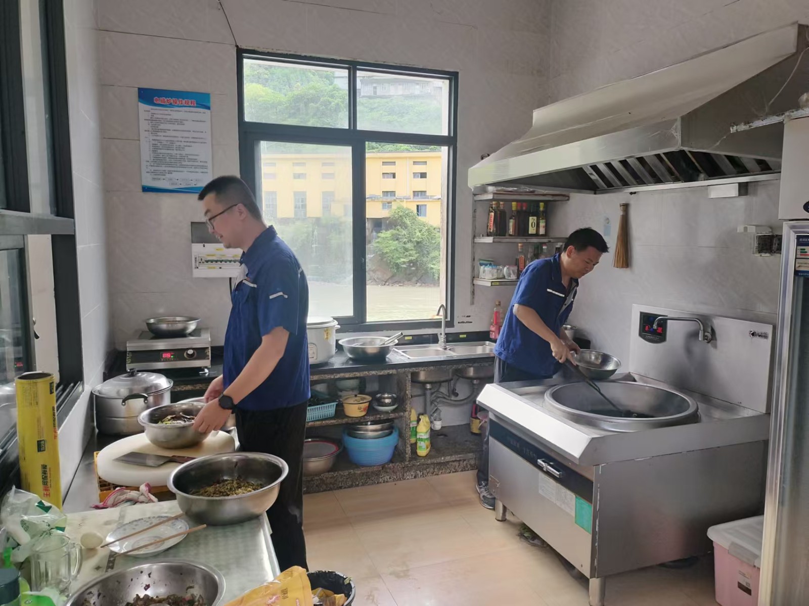 由于道路中斷,食堂工作人員無法抵達(dá)電廠,解決值班人員的三餐成了難題。于是,在廠員工就自己動(dòng)手,充分利用有限的時(shí)間和食材,相互協(xié)同,在廚房烹飪出美味可口的飯菜,既解決了溫飽,更溫暖了人心。這期間,電廠周邊的企地共建企業(yè)和政府單位也給予了關(guān)心、幫助和支持。