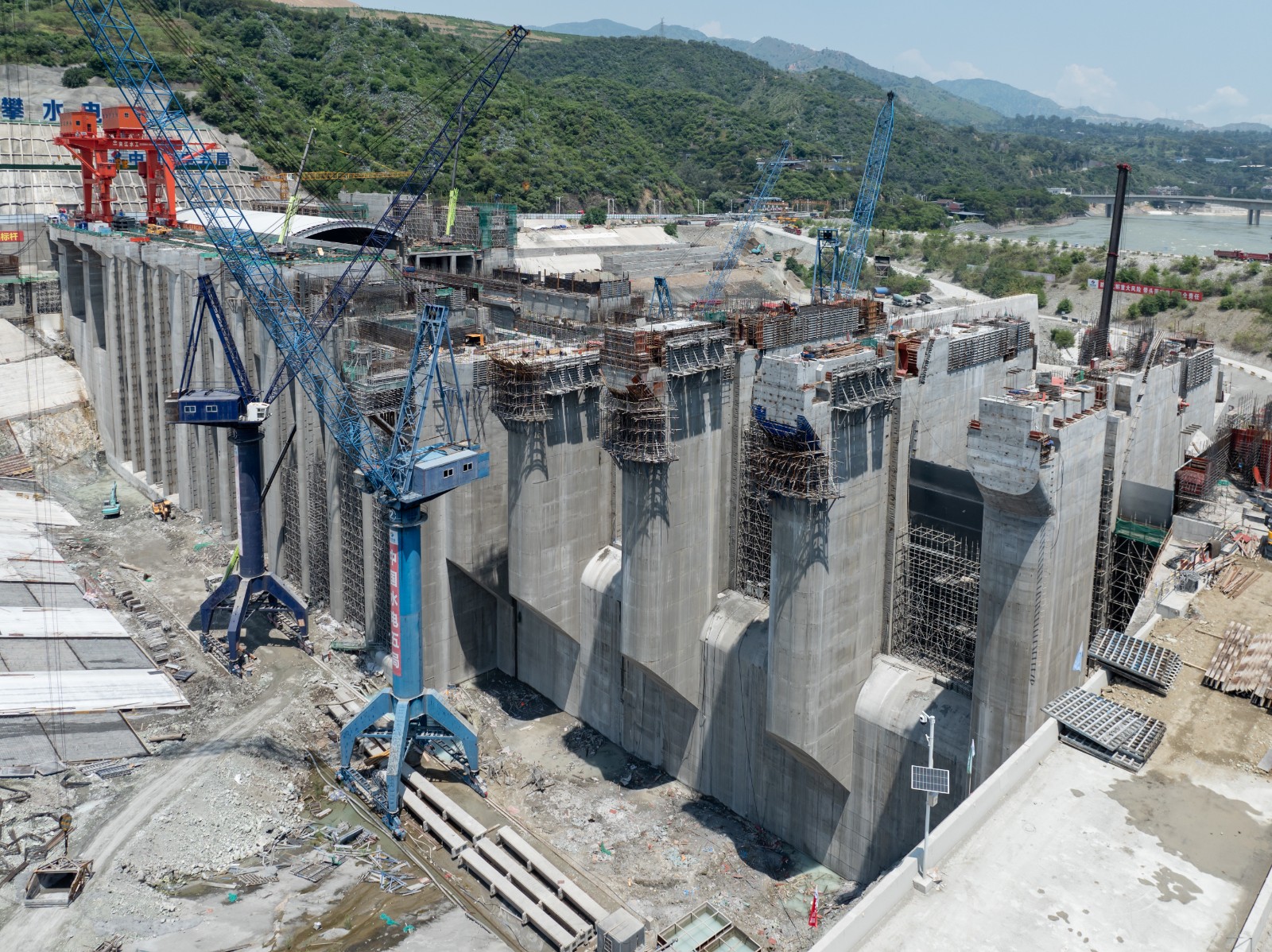 徐孝剛表示,金屬結(jié)構(gòu)安裝是實(shí)現(xiàn)工程下閘蓄水目標(biāo)的核心任務(wù),自7月下旬首節(jié)弧形工作門吊裝以來,在不到3個(gè)月的時(shí)間內(nèi),將要完成近萬噸的安裝工程量,工期緊、任務(wù)重、難度大,參建各方超前謀劃、提前部署,深入開展設(shè)計(jì)及施工優(yōu)化,多次專題研討安裝方案并組織專家論證,突破多項(xiàng)常規(guī)方法,采取鋼絞線提升裝置安裝尾水事故檢修門、臨時(shí)平臺配合汽車吊站位安裝弧形工作門、門槽安裝及其二期混凝土澆筑工序循環(huán)優(yōu)化等一系列超常規(guī)措施,大幅縮短了安裝工期,取得了階段性成果,希望各參建單位持續(xù)保持昂揚(yáng)斗志、乘勢而上,協(xié)同并進(jìn)、合力攻堅(jiān),為全面實(shí)現(xiàn)工程建設(shè)目標(biāo)不懈奮斗。