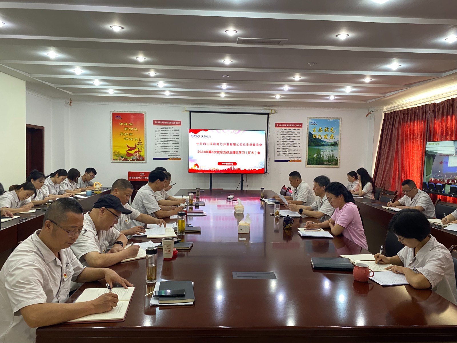 會議強調,公司各級黨組織和廣大黨員干部要切實提高政治站位,深學細悟全會精神,找準全會精神與公司工作的結合點,明確目標、細化措施、壓實責任,把學習成果轉化為推動工作的強大動力,推動全會精神在公司落地生根、開花結果。要緊密結合實際,在抓好主業(yè)的同時密切關注地方政府在新能源項目方面的動態(tài)和政策,搶抓機遇擴大公司經營規(guī)模,真抓實干推動發(fā)展。要針對當前汛期工作,密切關注氣象地災預警信息,加強防汛值班和巡視檢查,做好防汛減災應急準備,并利用汛期豐沛來水組織好發(fā)電生產。