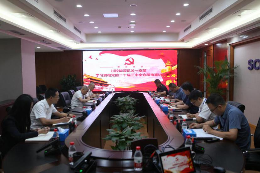 9月29日下午,川投能源董事會秘書魯晉川在公司機關一支部宣講黨的二十屆三中全會精神和省委十二屆六次全會精神,督導檢查貫徹落實情況,并以普通黨員身份參加所在支部主題黨日活動,支部全體在家黨員參加學習。
